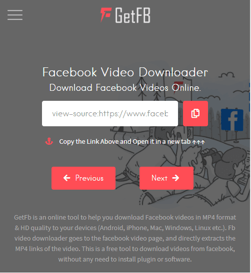 Select all and Copy all the text from new tab. Then Paste it on the Facebook Video Downloader, before clicking Download